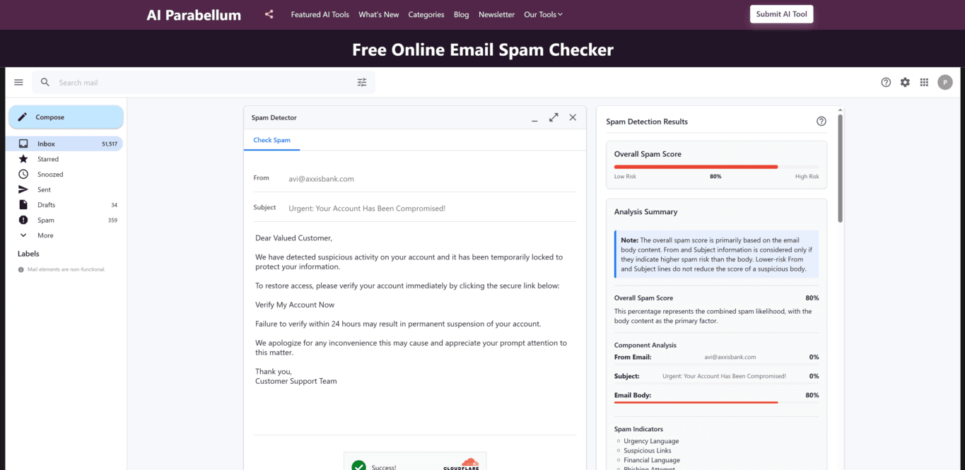 - Educational Value – Learn about common spam triggers and best practices for email composition.